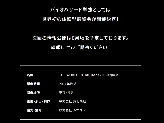 在官方网站上,卡普空进一步补充说明,此次展览以“体验型”为核心特色,下一轮信息披露预计会在6月前后进行。