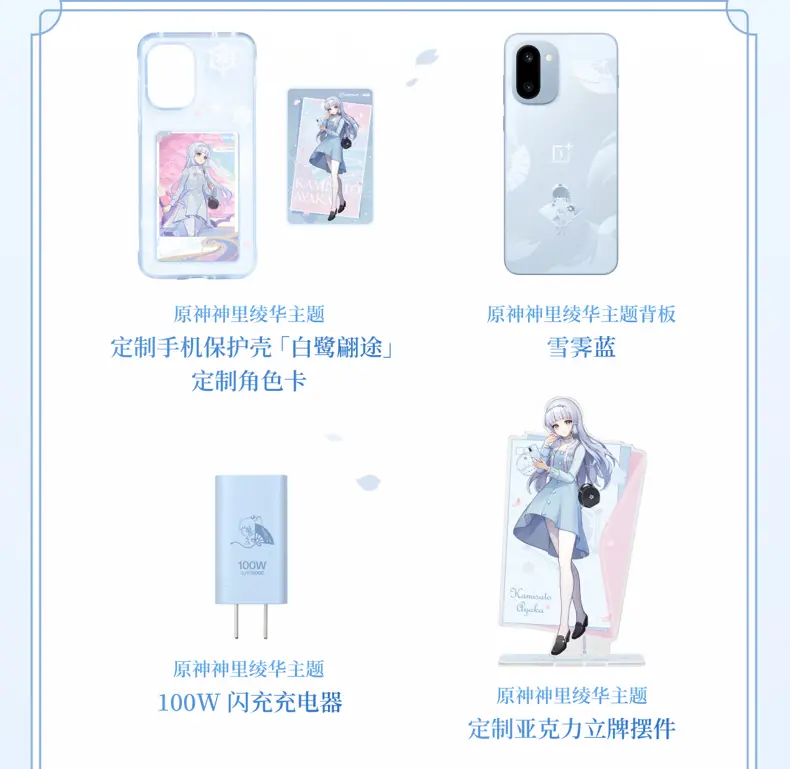 商品详情页显示,一加 Ace 6T 原神神里绫华定制机的专属手提箱礼盒里包含以下物品: